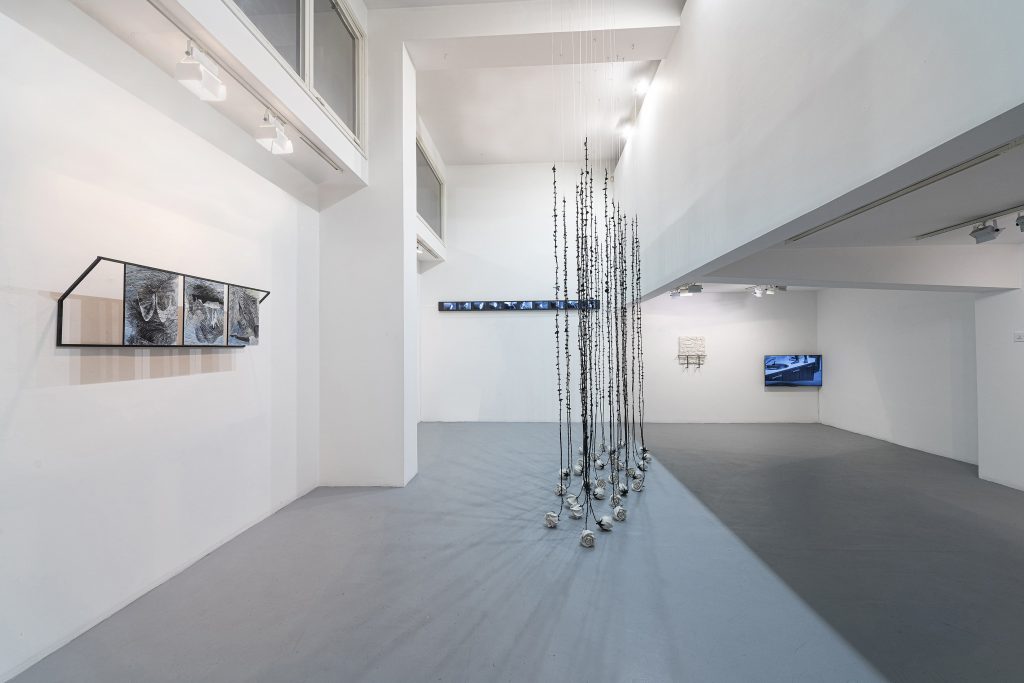 Η τοπολογική διάταξη του χώρου επιτρέπει στις σχέσεις μεταξύ σώματος και υλικότητας, μνήμης και δομής, ταλάντευσης και κατάρρευσης να αναδιαμορφώνονται διαρκώς. Στην είσοδο, τα επιτοίχια έργα Epistoli I–IX (2024) ορίζουν τις πρώτες συντεταγμένες της έκθεσης. Τα κείμενα στα οποία βασίζονται, επιστολές γραμμένες σε συνθήκες εγκλεισμού και ανασυρμένες έπειτα από επίμονη έρευνα, υπερβαίνουν τη λειτουργία τους ως αρχεία· είναι θραύσματα ζωών, εγκλωβισμένων ανάμεσα στη μνήμη που μπορεί να ανακτηθεί και στη σιωπή που δεν αναστρέφεται. Οι μικρές αυτές ζωγραφικές επιφάνειες μετατρέπουν τη γλώσσα σε ύλη και τη μνήμη σε πλέγμα. Κάθε έργο λειτουργεί ως ίχνος και όχι ως κατεύθυνση, ένα απόσπασμα που αντιστέκεται στην οριστική ερμηνεία. Μέσα σε αυτό το αιωρούμενο πεδίο, η ανάγνωση γίνεται πράξη προσανατολισμού μέσα στην αβεβαιότητα, όπου το νόημα δεν ανακαλύπτεται αλλά διαρκώς αναδιατάσσεται.