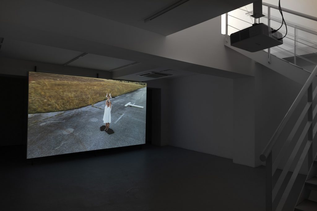 The experience culminates in the underground space with States of Exception: Coordinates of Possibility (2025). In this video, filmed in an abandoned airport, Antoniou situates the viewer in a space between function and obsolescence, between law and cessation. The architectural structures of the airport — towers, flight signs, and the “T” shaped runway markers — appear as remnants of a control system that has lost its power yet continues to carry its memory and latent force. Within this framework, the performer moves, imitating orientation signals and repeating gestures without aim or purpose. Her movements do not restore order; they transform orientation into ritual and conformity into reflection. The work subverts the logic of power and control, transforming the airport into a site of waiting and anticipation. Stillness becomes a form of resistance, pause turns into possibility, and the architecture of the void acquires new meaning as a space of pure experience and potential.